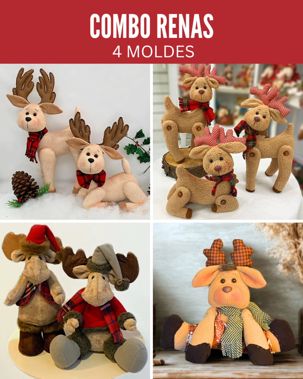 Transforma tu Navidad con el Combo Renos, un paquete especial que incluye 4 moldes encantadores para crear adorables renos navideños en diferentes tamaños.